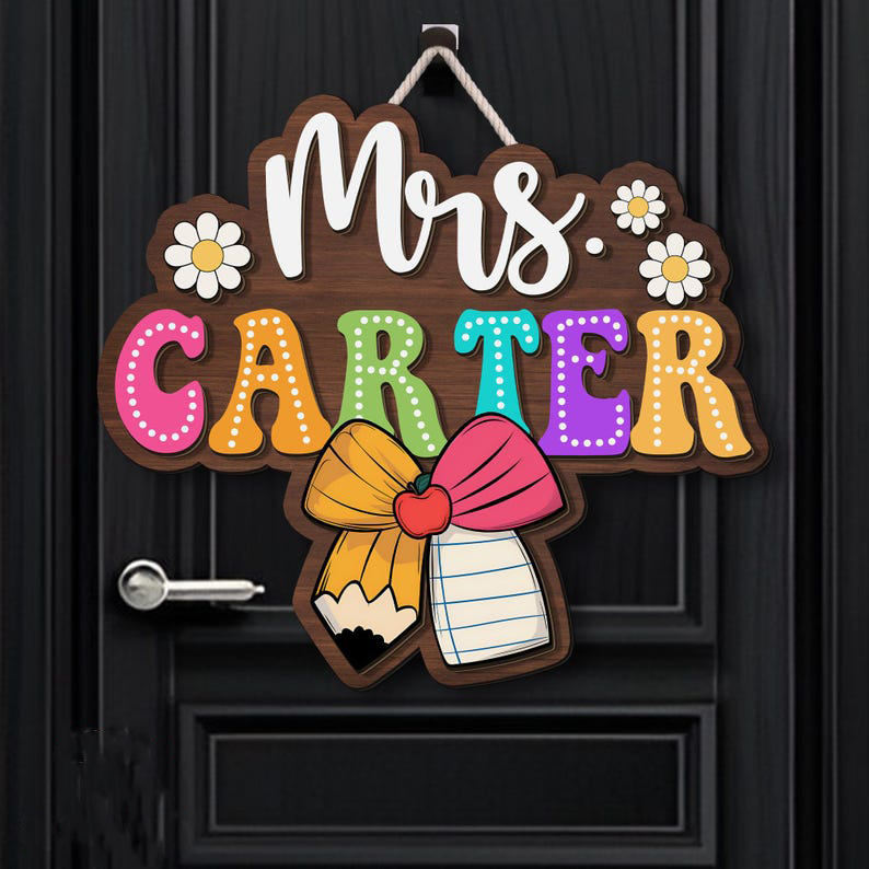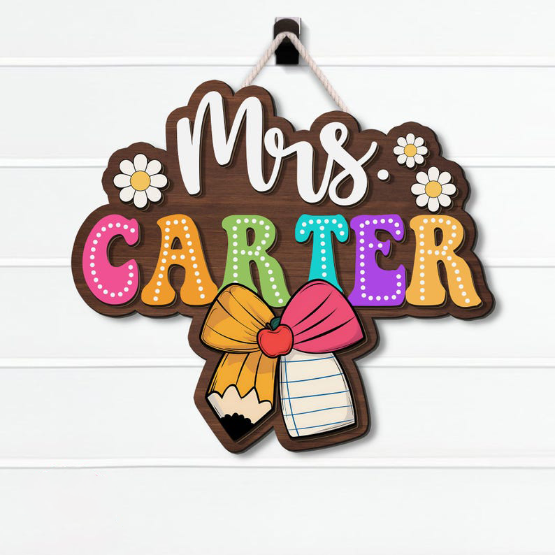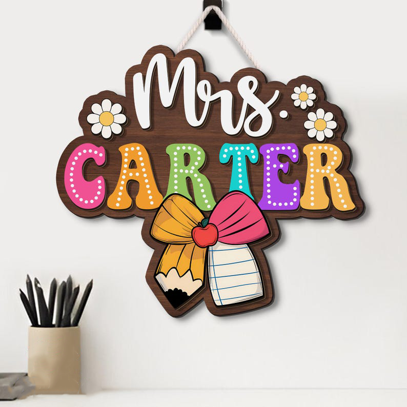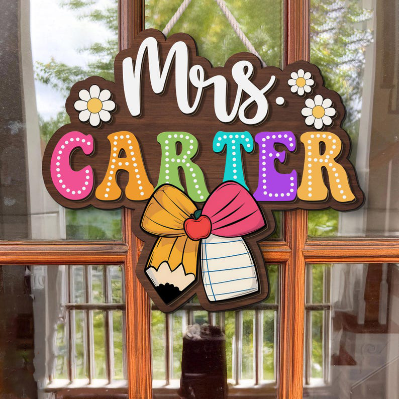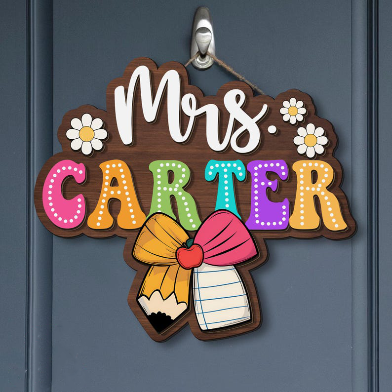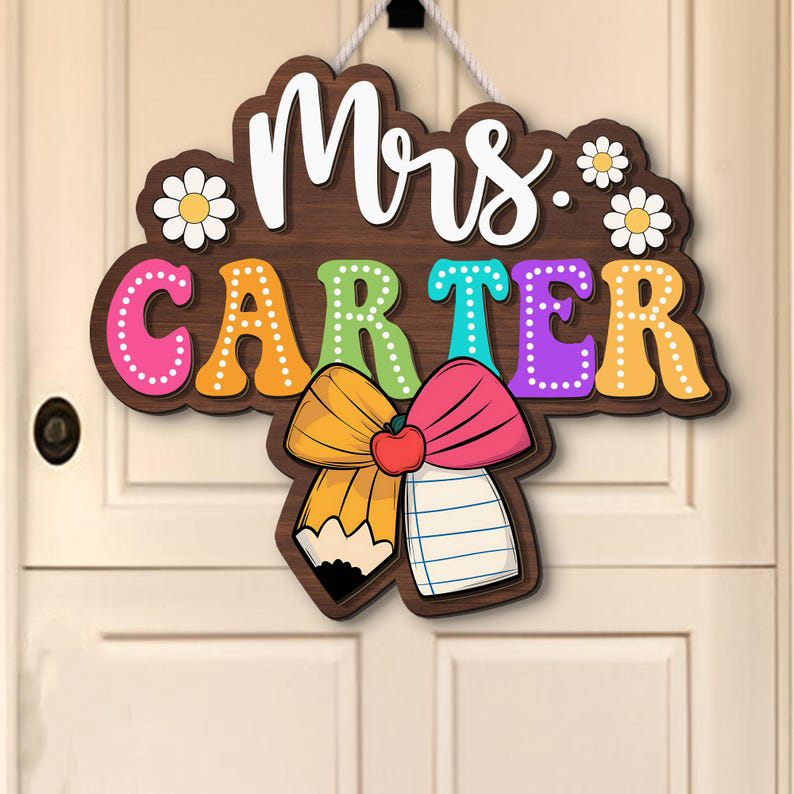 3D Teacher Door Sign, Classroom Decor, Teacher Appreciation Gift, Custom Name Teacher Door Hanger, Classroom Welcome Sign, Wooden Name Sign