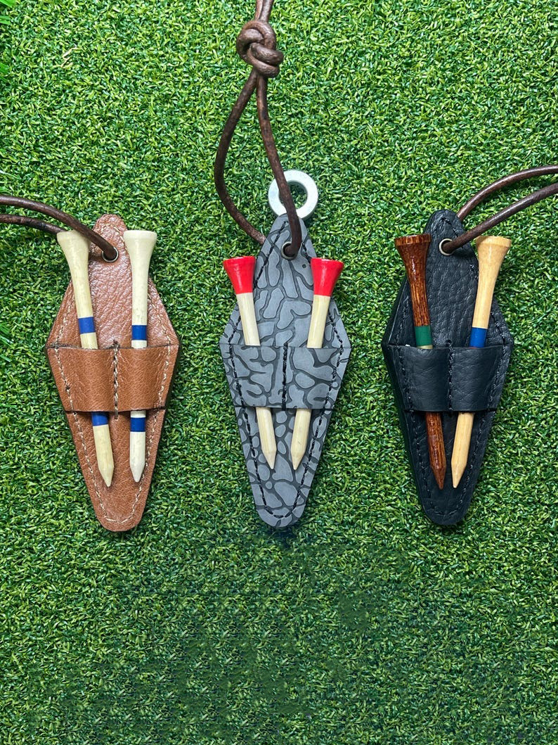 Keep your golf tees and Tomo Golf Ninja divot repair tool securely stored and easily accessible with this exquisite leather Golf Tee Holder.