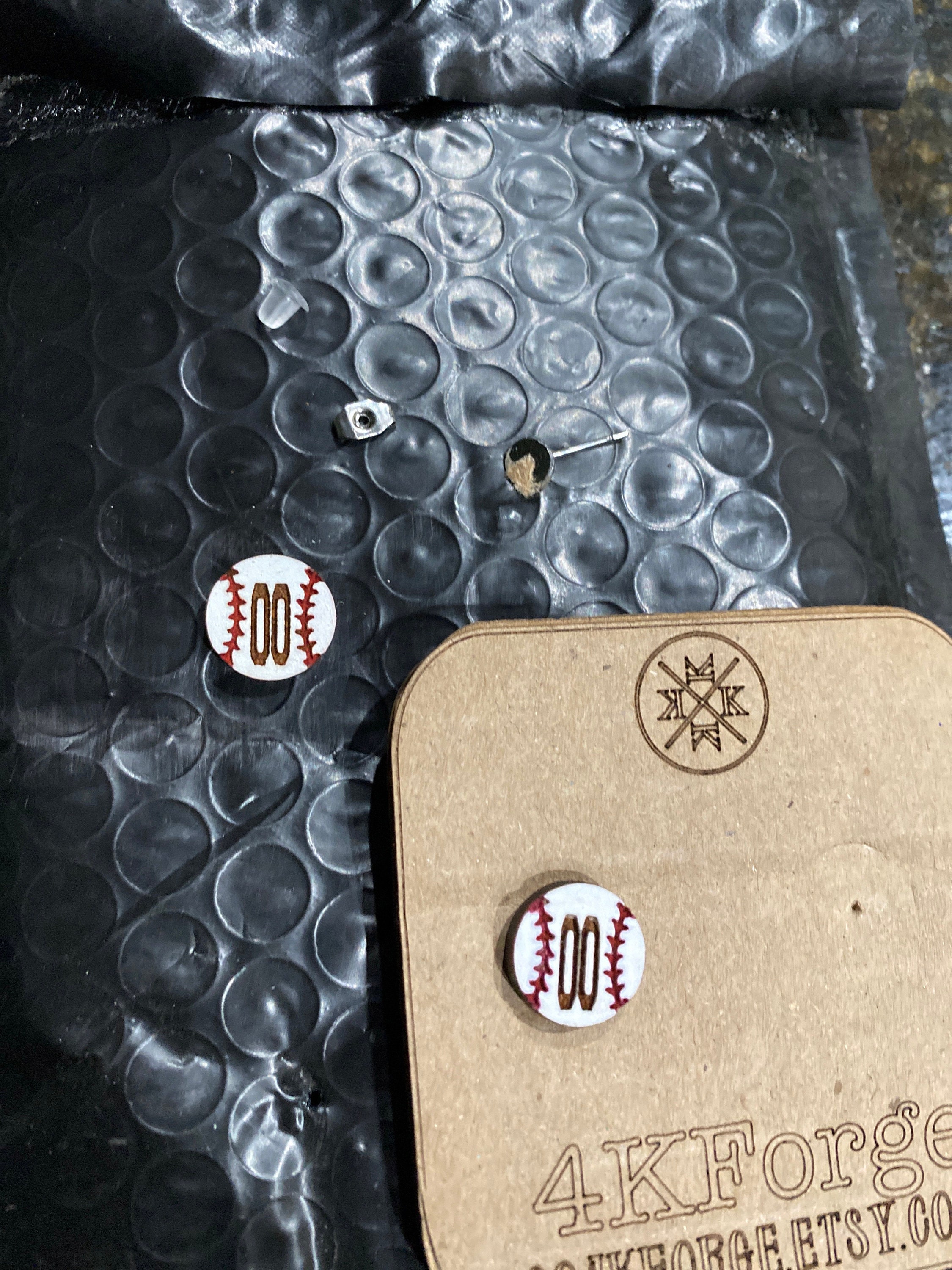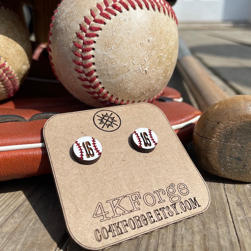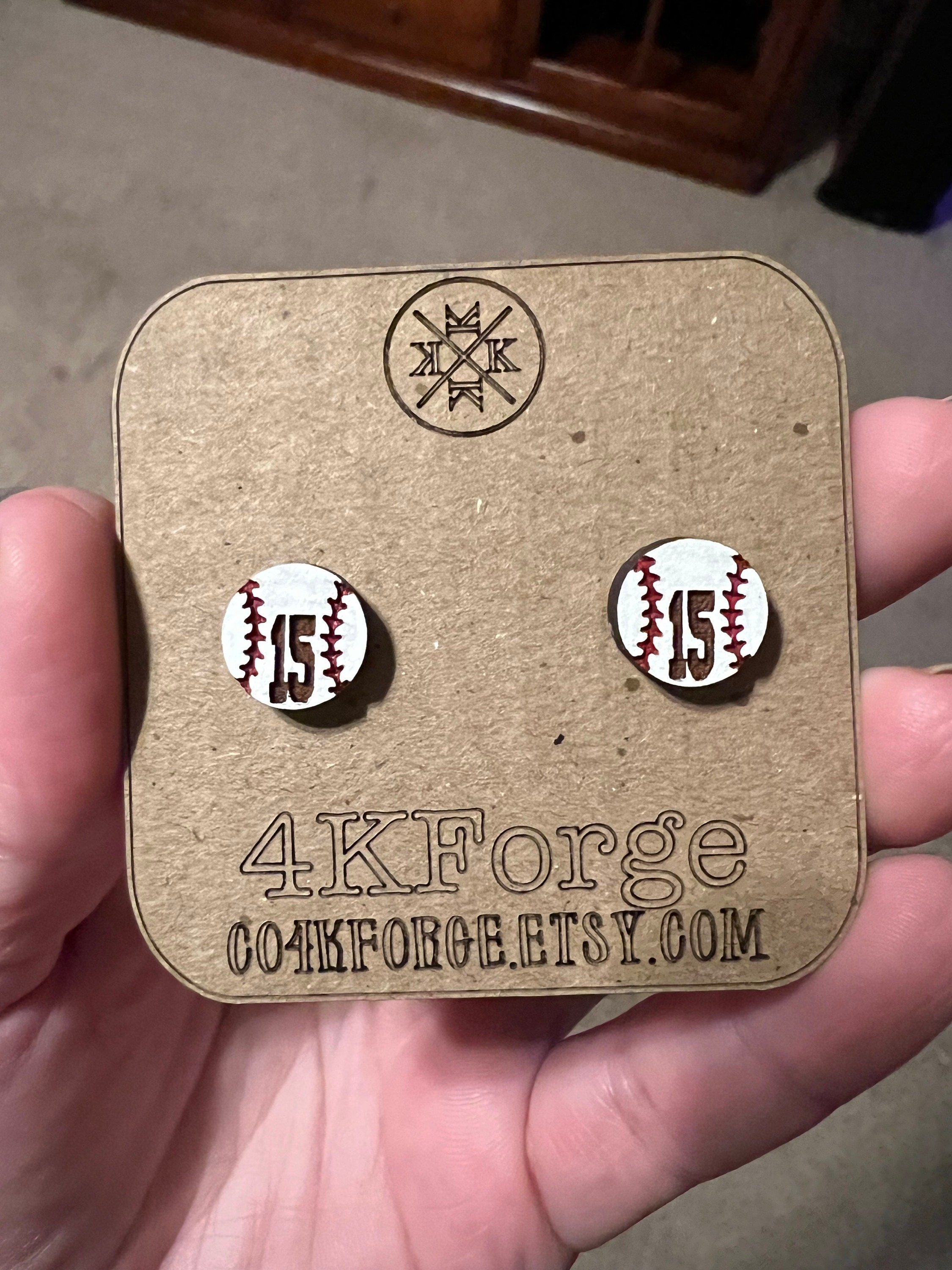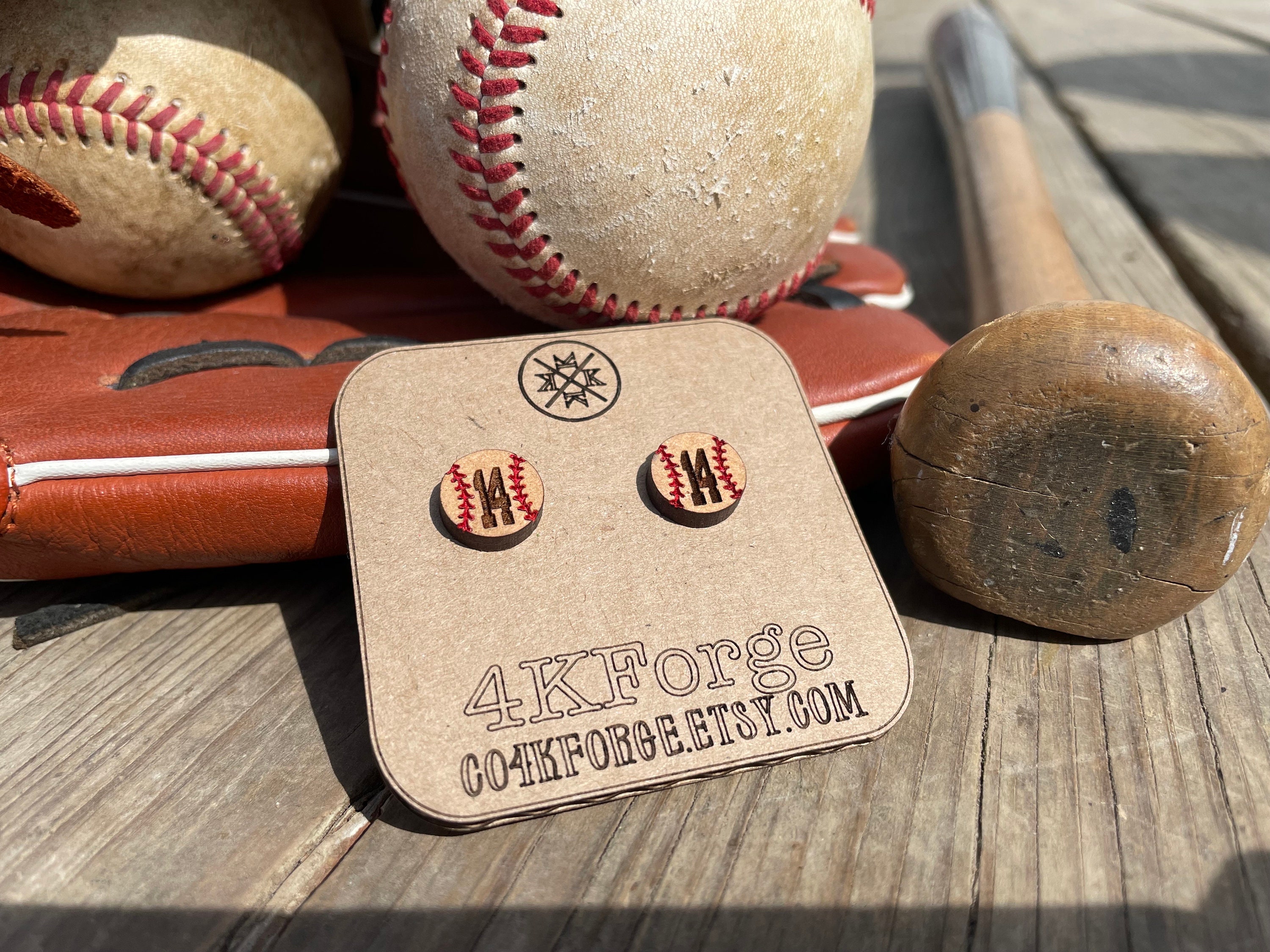 Baseball is back!!!!! Personalizable baseball wooden stud earrings laser engraved on lightweight 1/8" wood for comfortable wear. Optional personalization with your/your player's number.