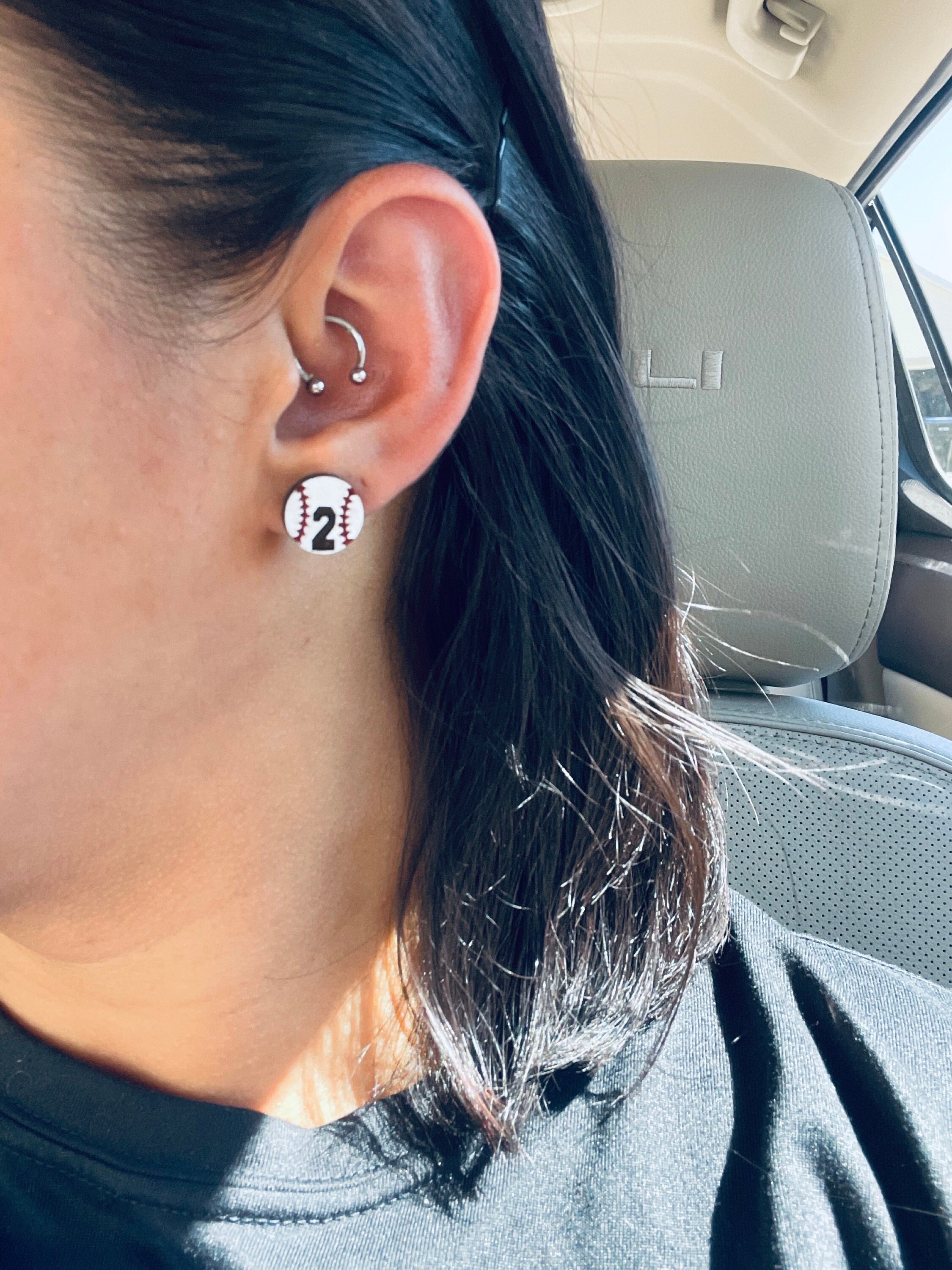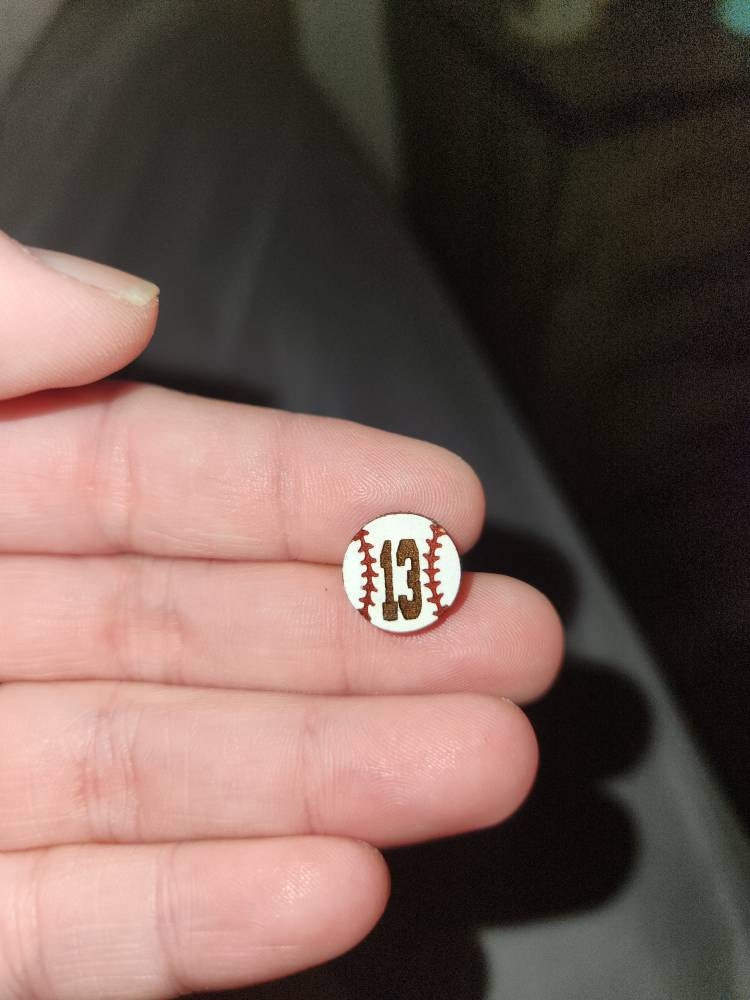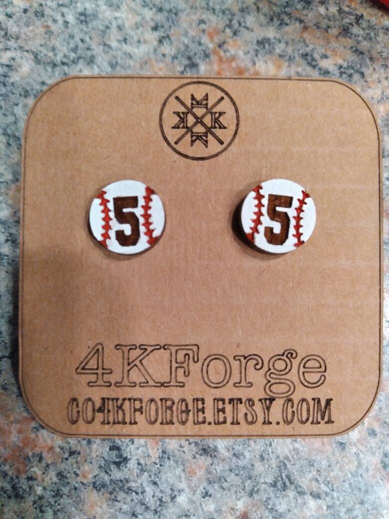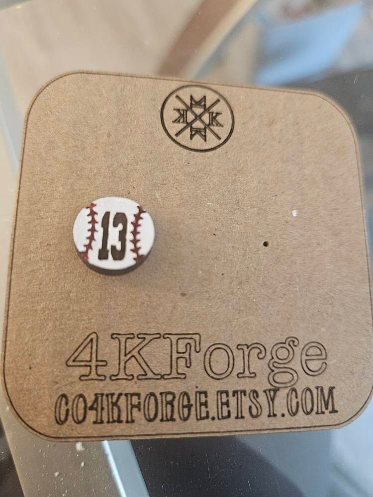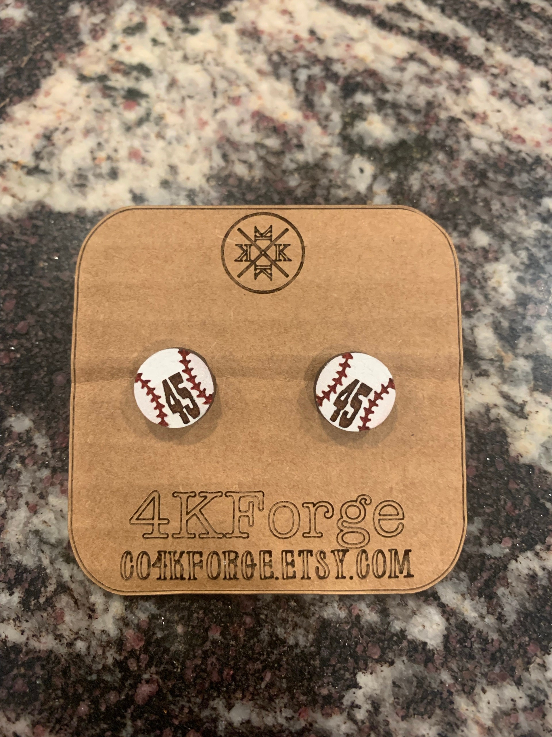 Baseball is back!!!!! Personalizable baseball wooden stud earrings laser engraved on lightweight 1/8" wood for comfortable wear. Optional personalization with your/your player's number.