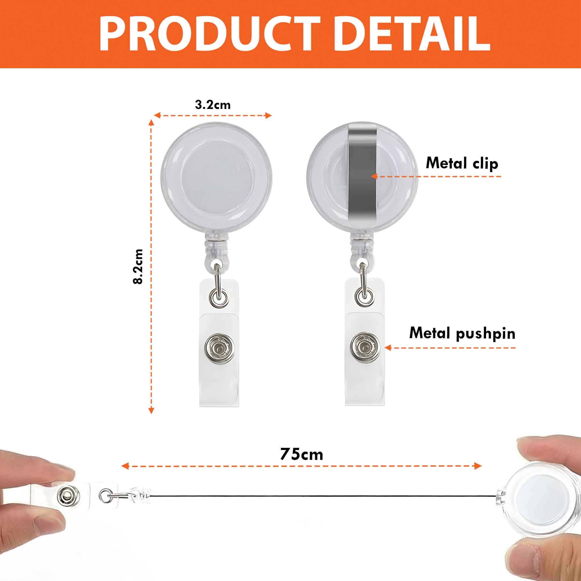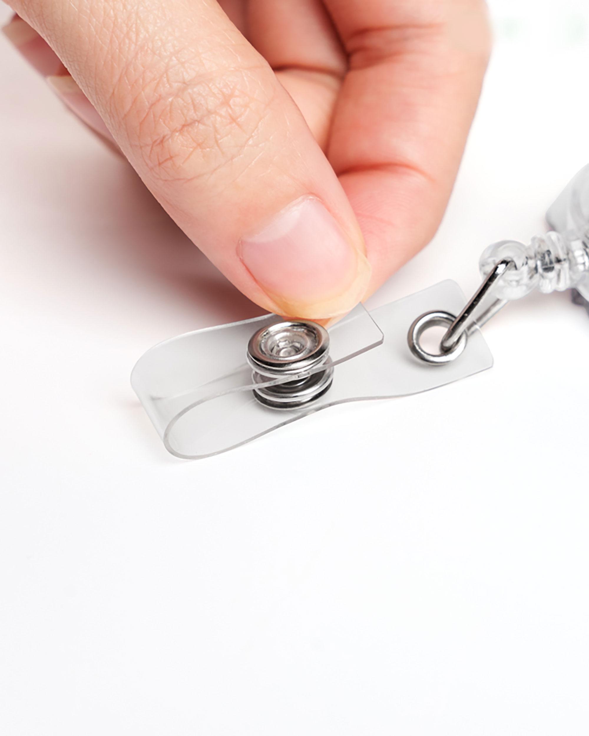 Below the transparent clip strip, you can hang ID cards, tags, name badges, or other important items. The clip on the back has a strong grip and can easily attach to any of your clothing, ensuring your essentials are always within reach.