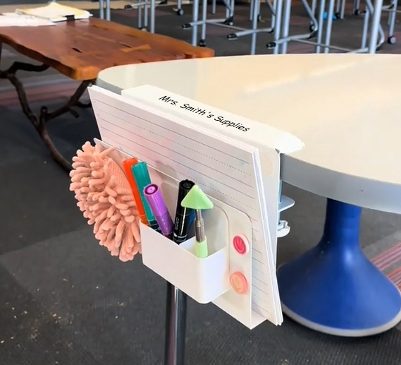 Available in four cheerful colors, it also features a customizable name plate, making it a personal and thoughtful gift for teachers. Whether used for holding markers, notepads, or laptops, it keeps essentials at arm’s reach and surfaces clear—perfect for teachers who value both function and style.